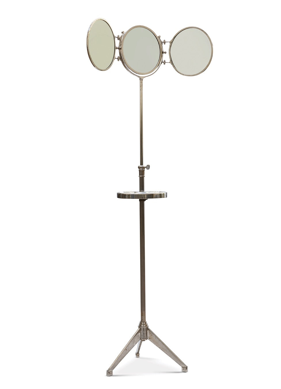 Art Deco French Nickel-Plated Illuminated Floor Mirror by Brot, 1930s