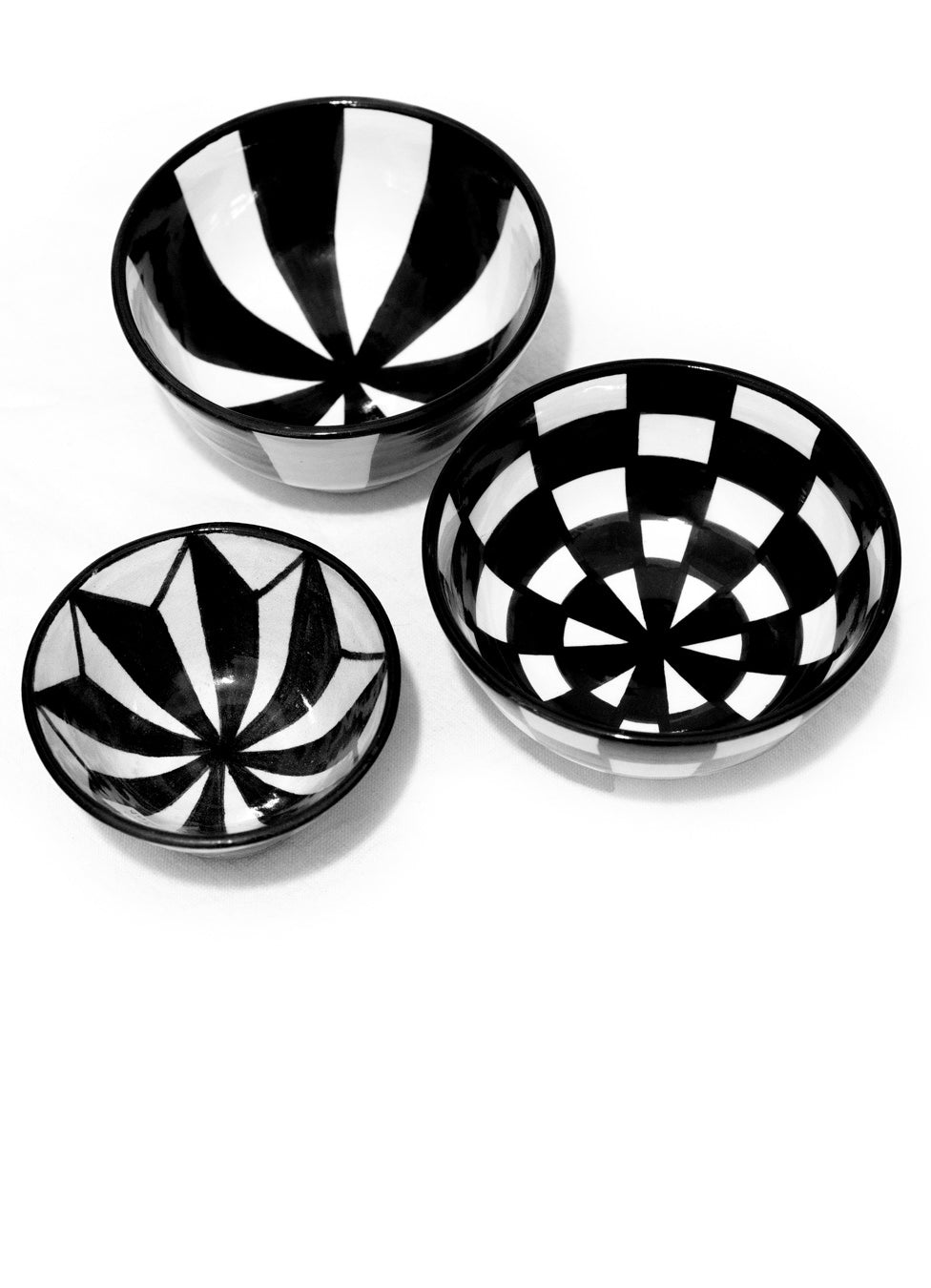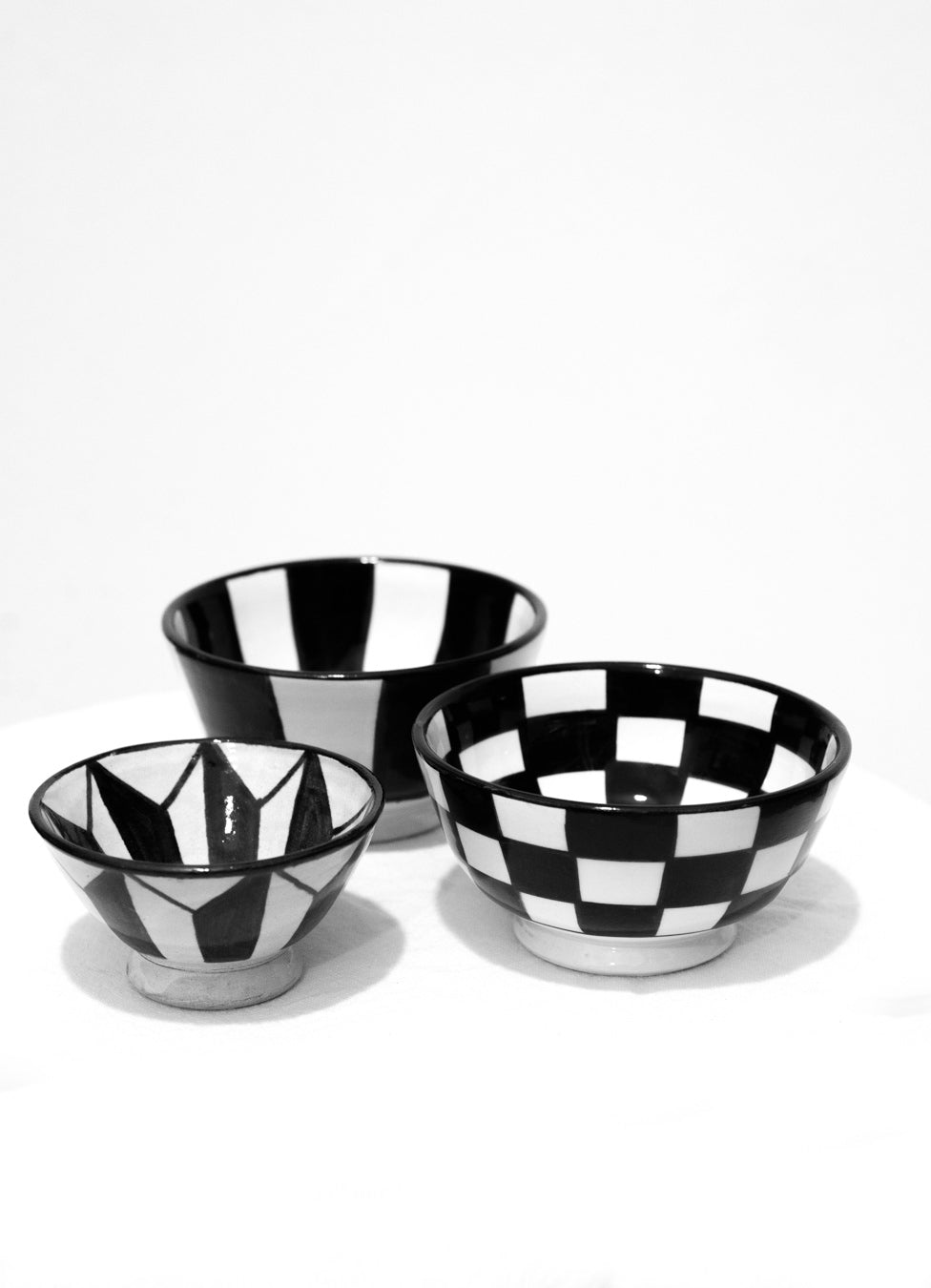 This bowl is handmade by Moroccan artisans and skilfully painted by hand – A traditional ceramic adorned with a captivating graphic motif. With a black tip and classic curved silhouette, it is a perfect addition to any tableware collection or as a single decorative piece. The monochrome colour palette maintains a harmonious atmosphere. The piece is glazed for a slight glossy finish.