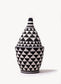 A lidded basket is exquisitely handwoven by Moroccan artisans using centuries-old techniques. The basket is adorned with a beautiful tribal, geometric motif. This multi-functional object can be used decoratively, as a storage or a laundry basket. The monochrome colour palette maintains a harmonious atmosphere. It comes in three sizes and looks also great mixed together with other tribal baskets from this collection.