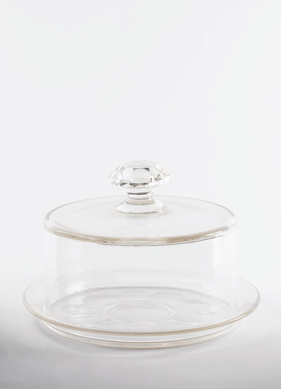 A vintage Art Deco lidded cake display in excellent condition. An elegant kitchen and dining table accessory, ideal for displaying cakes or cheese. Exquisitely crafted from crystal in France.