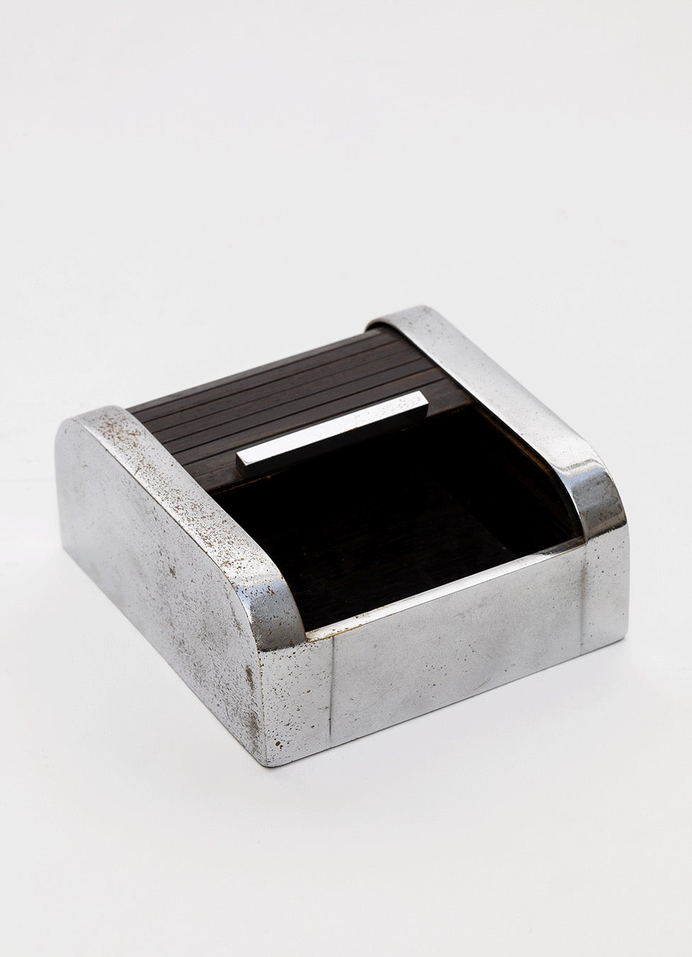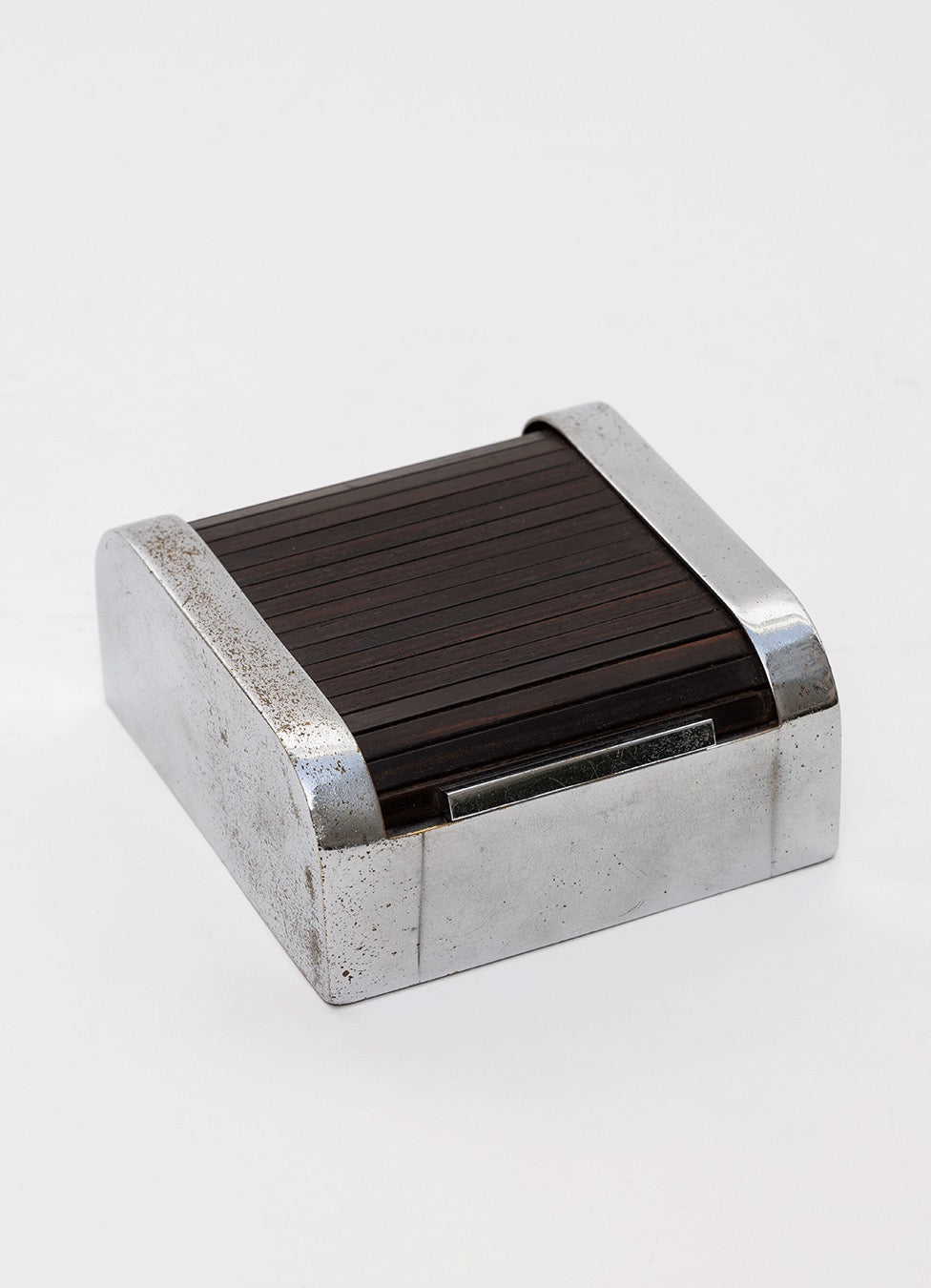An Art Deco cigarette holder which is composed of rare macassar wood and chrome-plated brass. Art Deco designers used tropical woods because of their enchanting qualities.