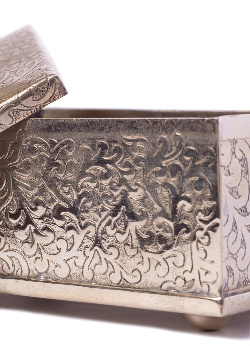 A decorative item with a subtle vintage flair. This box is beautifully emblazoned with an intrinsic, artful motif. Add it to your dresser or vanity and use it to store jewellery. This piece is in excellent condition.
