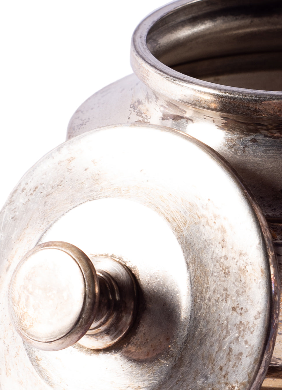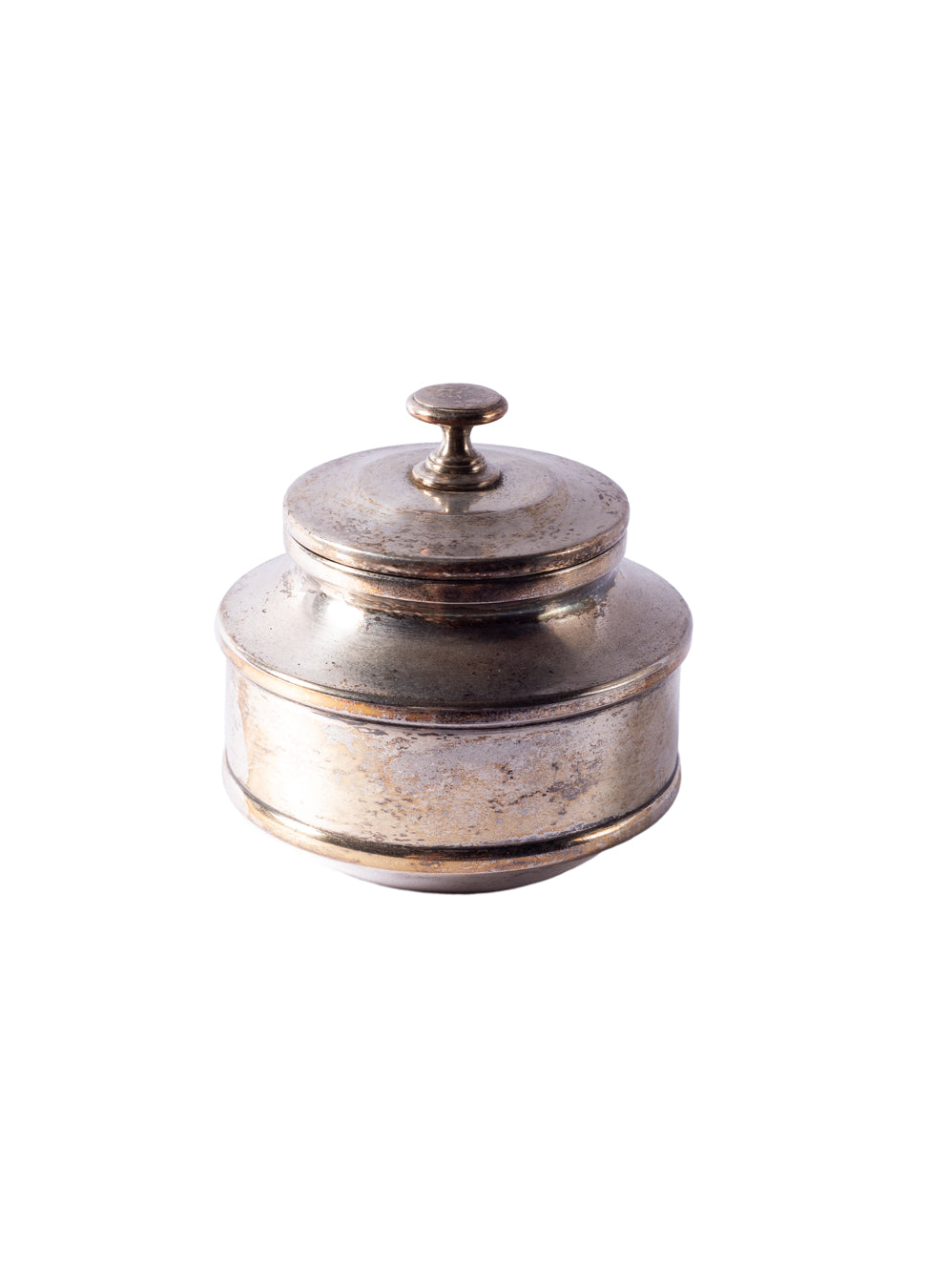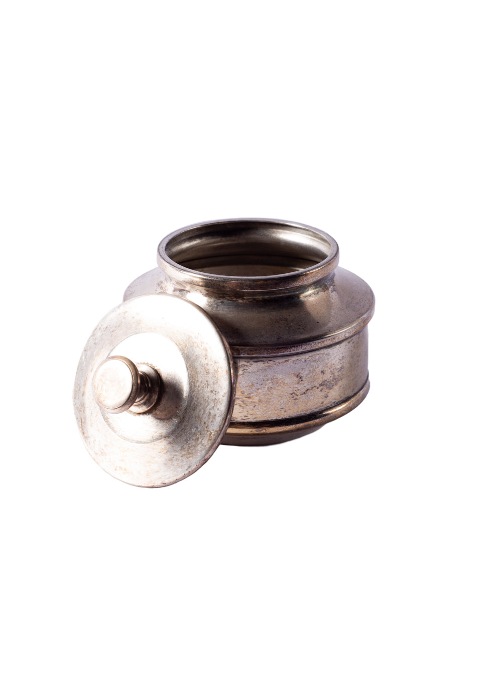 A silver-plated handcrafted trinket box. Crafted in Morocco, it features a removable lid. This is a highly functional and decorative piece. This delightful piece can be used to contain small items or jewellery. This piece is in excellent condition.